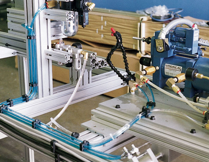 Automation has been achieved through a variety of means such as robotic, hydraulic, and pneumatic solutions. Profile systems provide both the structure and rigidity for your large machine bases, mechanical arms, fixtures and guarding equipment as well as the precision needed for jigs, sensors, safety components, or computer system mounts.